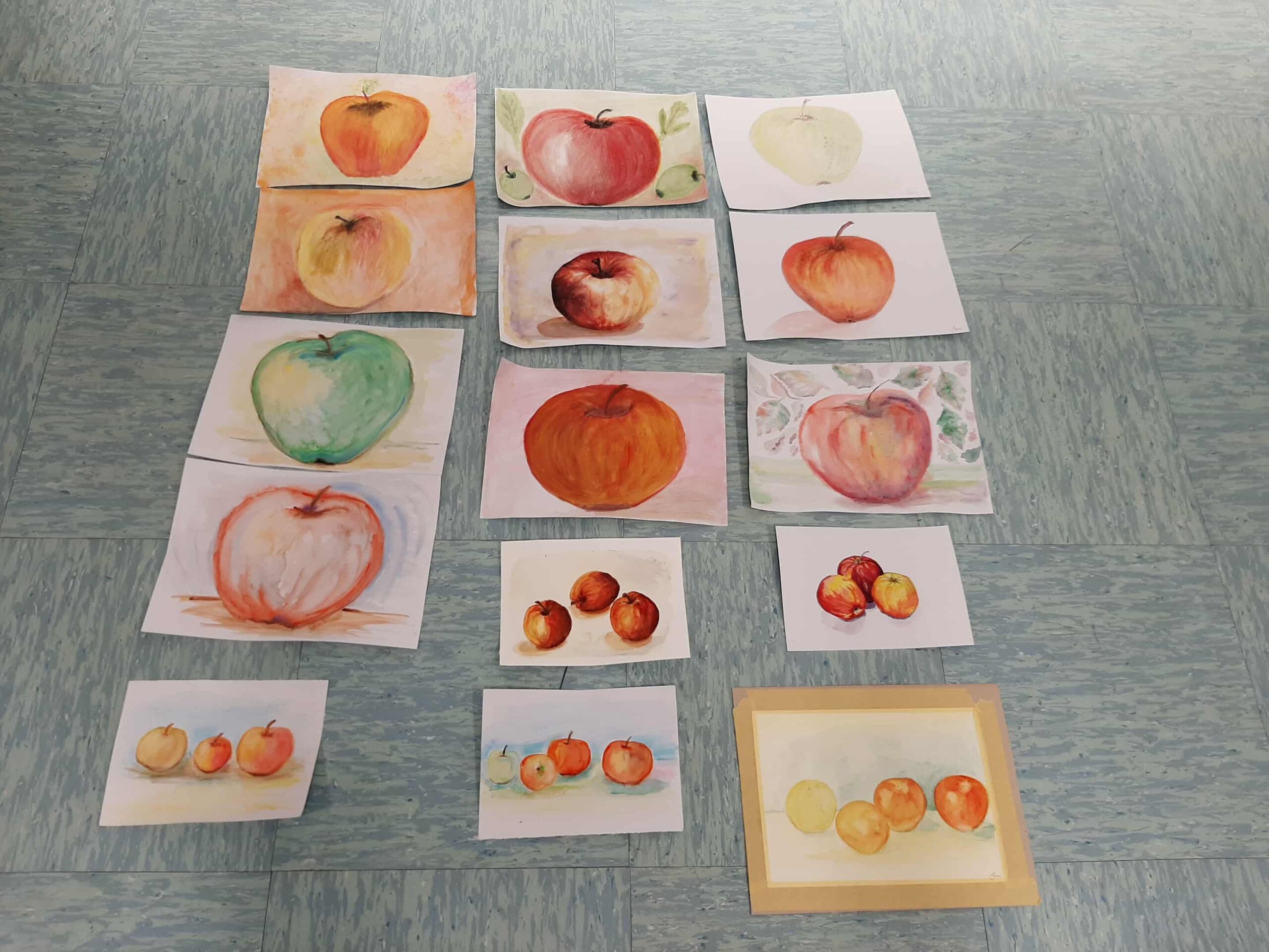 🍎 Začetnice v akvarelu – prvi koraki z vodo in barvo