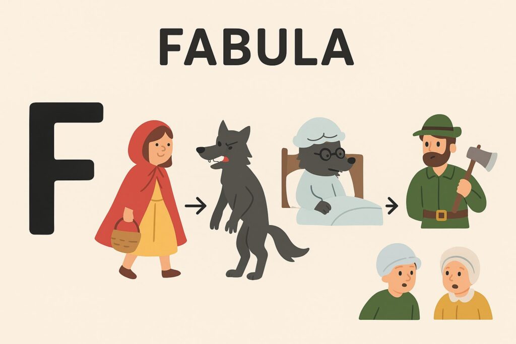 To je fabula – osnovno zaporedje dogodkov, brez okrasja in podrobnosti.