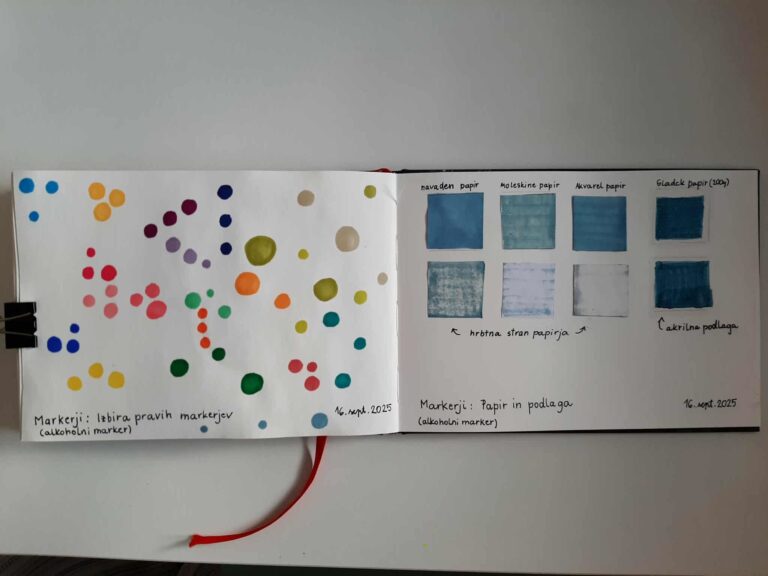 📘 MARKERJI V desetih korakih do ustvarjalnosti “”Vsaka poteza markerja je nova priložnost za barvo, obliko in domišljijo.” Obrazložitev: Izbira barv