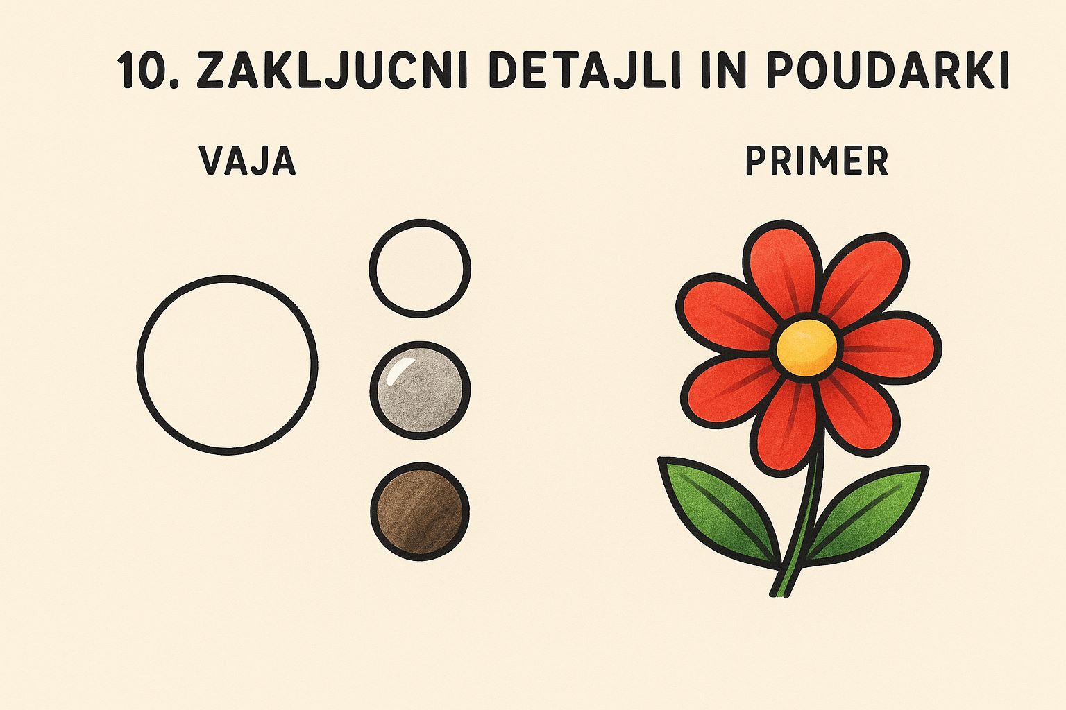 📘 MARKERJI V desetih korakih do ustvarjalnosti “”Vsaka poteza markerja je nova priložnost za barvo, obliko in domišljijo.” Obrazložitev: Senčenje daje